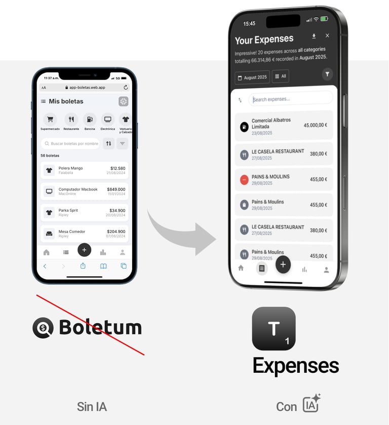 Decimos adiós a Boletum y damos la bienvenida a Tomos Expenses (T1) — una versión completamente renovada y potenciada con Inteligencia Artificial.